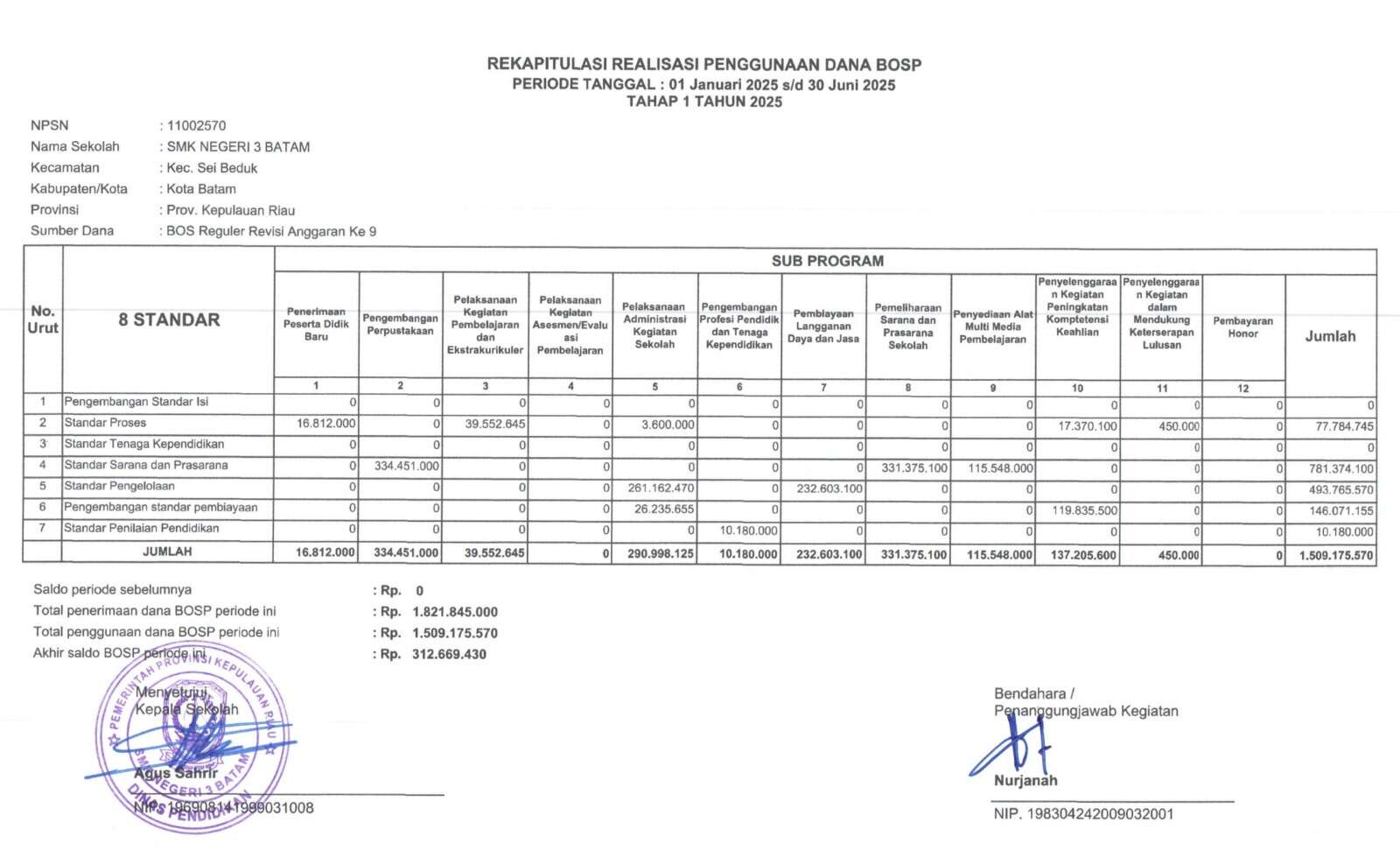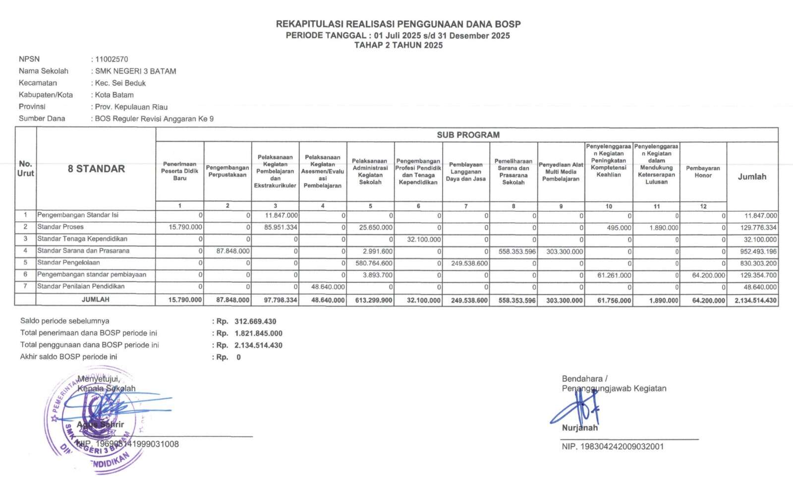 SMKN 3 Batam telah menyelesaikan pelaporan Realisasi Penggunaan Dana BOS Reguler Tahap I Tahun Anggaran 2025, untuk periode 1 Januari hingga 30 Juni ...